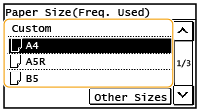 اگر اندازه کاغذ بارگذاری شده نشان داده نشد، <Other Sizes> را انتخاب کنید.