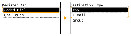 گزینه <Fax Number> یا <E-Mail Address> را انتخاب کنید.