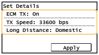 می توانید تنظیمات دقیقی برای مقصدها انجام دهید <Menu>  <Fax Settings>. با اینحال، تنظیمات انجام شده از <Addr. Book> برای تنظیمات دقیق مقصدهای ثبت شده در Address Book فعال می شوند.