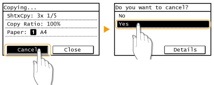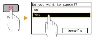 اسناد اسکن شده اند و منتظر چاپ هستند. یک سند کپی که باید لغو شود انتخاب کرده و <Yes> را انتخاب کنید.