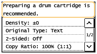 <Preparing a drum cartridge is recommended.>/<Preparing a drum cart. is recommended.>