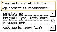 <Drum cart. end of lifetime. Replacement is recommended.>/<Drum cart. life end. Replcmt. recommended.>