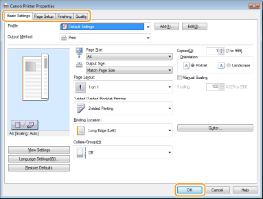 درایور چاپگر را برای این دستگاه انتخاب کرده و روی [موارد ترجیحی] یا [ویژگی ها] کلیک کنید.