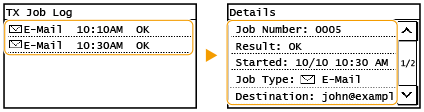 زمانی که <Display Job Log> بر روی <Off> تنظیم باشد، نمی توانید گزارشات اسناد ارسال شده را بررسی کنید. <Display Job Log>