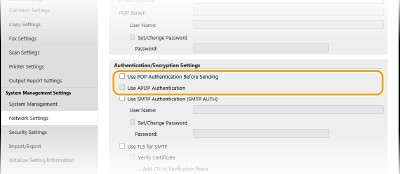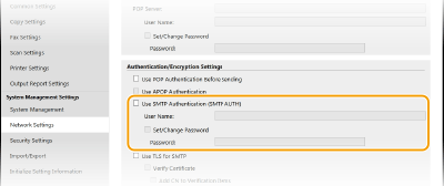 اگر تأیید اعتبار SMTP (SMTP AUTH) را پیکربندی می کنید، در زمان ارسال ایمیل، شناسایی کاربر از طریق نام کاربر و کلمه عبور انجام می شود.