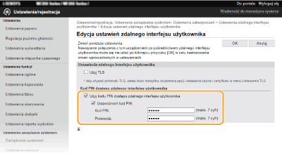 Jeżeli inicjowane są <Ustawienia zarządzania systemem>Kod PIN do dostępu do Zdalnego interfejsu użytkownika jest także inicjowany. Po inicjalizacji należy zresetować kod PIN. <Zainicjuj menu>