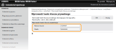 [Ustawienia klucza i certyfikatu] albo [Ustawienia certyfikatu CA].