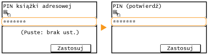Dostępna jest funkcja ustawienia kodu PIN do książki adresowej dla operacji dodawania nowych i edycji istniejących kontaktów w książce. Ustawienie kodu PIN do książki adresowej może zmniejszyć ryzyko wysłania dokumentów do przypadkowych odbiorców, ponieważ zmian w książce mogą dokonywać wyłącznie użytkownicy, którzy znają kod PIN.