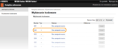 Istnieje także możliwość przypisania odbiorców do przycisków wybierania jednoprzyciskowego. W takim przypadku kliknij zakładkę [Jednoprzyciskowe] zamiast zakładki [Wybieranie kodowane].