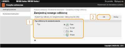 Wybierz pozycję [Typ odbiorcy do zarejestrowania] i kliknij przycisk [OK].