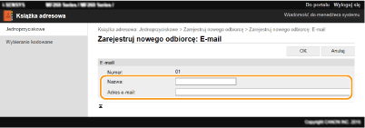 Za pomocą komputera można rejestrować odbiorców w książce adresowej urządzenia i edytować informacje o zarejestrowanych odbiorcach. Określ w tym miejscu folder udostępniony będący odbiorcą.