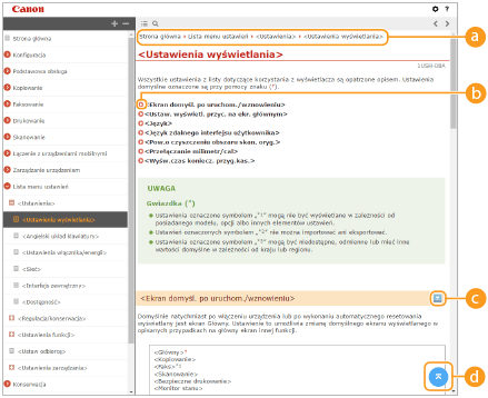 Kliknij, aby ustawić parametry określające sposób wyświetlania programu Podręcznik użytkownika, np. rozmiar znaków lub układ.
