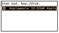 Jeśli podczas kopiowania od momentu zeskanowania oryginału upłynęło sporo czasu, ale drukowanie dokumentu jeszcze się nie rozpoczęło, można sprawdzić listę dokumentów oczekujących na wydrukowanie.