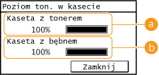 Wyświetlona ilość pozostałego toneru w zasobniku z tonerem albo zespole bębna może być użyta tylko jako wskazówka i może różnić się od faktycznej ilości.