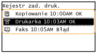 Wybierz <Rejestr zadań drukowania> i wybierz dokument, którego dziennik chcesz sprawdzić.