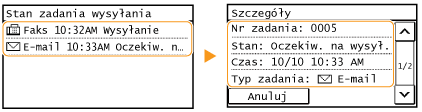 Komunikat <OK> jest wyświetlany po pomyślnym wysłaniu dokumentu. Jeżeli natomiast wysłanie dokumentu nie powiedzie się, ponieważ zostało anulowane lub wystąpił błąd, na ekranie pojawi się komunikat <Błąd>.