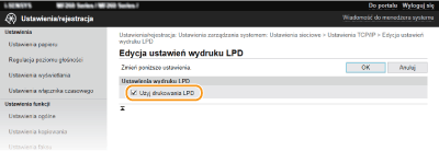 Zaznaczenie tego pola wyboru umożliwia wydruk za pomocą protokołu LPD. Jeśli drukowanie za pomocą protokołu LPD nie jest używane, należy usunąć zaznaczenie tego pola wyboru. [Użyj wydruku RAW]