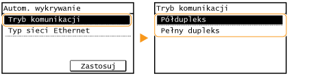 Naprzemiennie wysyła i pobiera dane komunikacyjne. Opcję tę należy wybrać, gdy urządzenie jest podłączone do urządzenia sieciowego w trybie półdupleks.