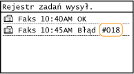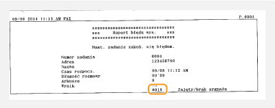 Jeśli drukowanie nie przebiega prawidłowo lub nie można wysłać bądź odebrać faksu lub zeskanowanego dokumentu albo gdy występują inne nieprawidłowości w działaniu, błąd ten jest podany w raporcie lub komunikacie na ekranie <Monitor stanu> w postaci trzycyfrowej liczby (kodu błędu). Zapoznaj się z poniższymi opisami, aby uzyskać informacje na temat przyczyn i rozwiązań dla każdego kodu błędu. Informacje dotyczące drukowania raportu o błędach i danych zawartych w raporcie znajdują się w sekcji