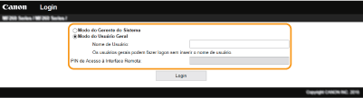 Selecione [Modo do Gerente do Sistema] ou [Modo do Usuário Geral].