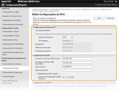 Pode alterar as diferentes definições da máquina utilizando a UI Remota. A maioria das definições também pode ser configurada na máquina, mas algumas definições só podem ser configuradas utilizando a UI Remota. Esta secção descreve o fluxo básico de alteração das definições da máquina utilizando a UI Remota.