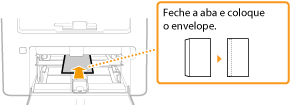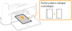 Coloque os envelopes de modo a que a extremidade com a aba fique virada para o lado esquerdo, conforme mostrado na imagem.