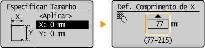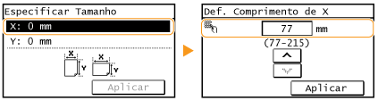 Especifique o comprimento do lado <X> e do lado <Y>.