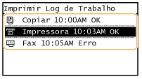 Se <Exibir Log do Trabalho> estiver definido para <Desativado>, não pode verificar os registos de impressão. <Exibir Log do Trabalho>