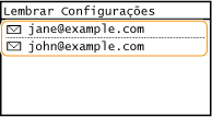Pode selecionar um destino de entre os últimos destinos utilizados. Quando especifica um destino utilizado anteriormente, a máquina configura também as mesmas definições de digitalização (por exemplo, a densidade) que utilizou da última vez que enviou documentos para o destino em questão.