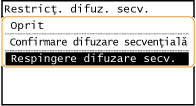 Puteţi să interziceţi o funcţie care trimite în mod colectiv un fax către mai multe destinaţii (difuzare secvenţială).