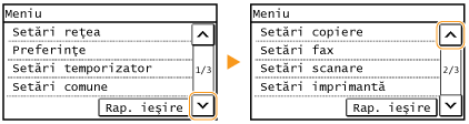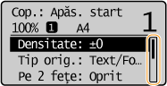 > pentru a derula ecranul. Ecranul se schimbă pagină cu pagină, iar numărul paginii este afişat pe bara de derulare.