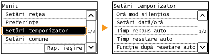 Puteţi modifica mai multe setări cu privire la afişaj, precum viteza de derulare sau limba de afişare: <Setări afişaj>