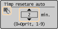 Puteţi modifica ecranul care este afişat în mod automat când aparatul este inactiv pentru o anumită perioadă de timp: <Funcţie după resetare auto>