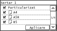Debifaţi casetele de selectare pentru formatele de hârtie care nu doriţi să fie afişate.