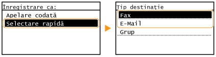 Selectaţi <Număr fax> sau <Adresă E-Mail>.