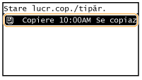 Când <Afişare jurnal activităţi> se setează la <Oprit>, nu puteţi verifica jurnalul lucrării de copiere. <Afişare jurnal activităţi>