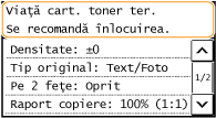 <Viaţă cart. toner ter. Se recomandă înlocuirea.>/<Viaţă cart. toner ter. Se recom. înlocuirea.>
