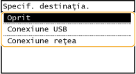 Selectaţi tipul de conexiune care este utilizată între aparat şi computer.