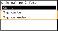 Selectaţi <Tip carte> sau <Tip calendar>