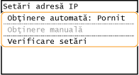 Verificaţi dacă <IP Automat> este setat la <Pornit>.