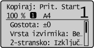 (COPY/SCAN), se prikaže glavni zaslon za izbrano funkcijo. Kot primer je spodaj prikazan glavni zaslon za kopiranje.