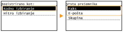 Ustvarite lahko skupino prejemnikov, ki so že registrirani v imeniku, in jih registrirate kot enega prejemnika. Za dodatne informacije glejte Registracija večjega števila prejemnikov v skupino.