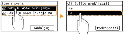Če želite pošiljanje faksov preklicati nemudoma po izbiri možnosti