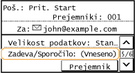 Med prilaganjem optično prebranih originalov e-poštnemu sporočilu lahko pred pošiljanjem e-poštnega sporočila navedete zadevo, sporočilo in naslov za odgovor ter prioriteto.