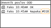 Če tiskanje ne uspe ali ne morete poslati ali sprejeti faksa ali optično prebranega dokumenta oziroma če pride do druge napake, se na poročilu ali v sporočilu na zaslonu <Nadzor stanja> prikaže napaka v obliki trimestne številke (koda napake). Spodaj preverite vzroke in rešitve za posamezne kode napak. Za informacije o tiskanju poročila o napakah in o informacijah v poročilu glejte