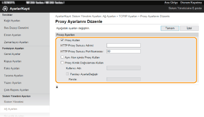 [Proxy Kullan] onay kutusunu seçin ve gerekli ayarları belirtin.
