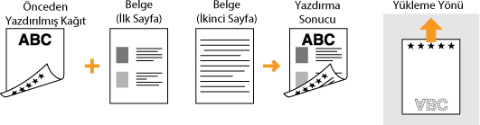 Bu bölümde, önceden basılı kağıtları, uygun yüzüne, uygun yönde yazdırılacak şekilde yükleme konusu açıklanmaktadır. Çekmeceye kağıt yüklemeye ilişkin genel yordamın açıklaması için bkz. Çekmeceye Kağıt Yükleme veya Çok Amaçlı Tepsiye Kağıt Yükleme.