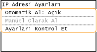 <Oto. IP> öğesinin <Açık> olarak ayarlanıp ayarlanmadığını kontrol edin.