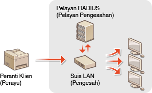 Maklumat pengesahan dihantar kepada dan diperiksa oleh pelayan RADIUS, yang membenarkan atau menolak komunikasi kepada rangkaian bergantung kepada hasil pengesahan. Jika pengesahan gagal, suis LAN (atau jalur akses) menyekat akses dari luar rangkaian. Mesin ini boleh menyambung ke rangkaian 802.1X sebagai peranti klien.