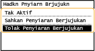 Anda boleh menghalang fungsi yang secara kolektif menghantar faks ke pelbagai destinasi (Penyiaran Berturutan).